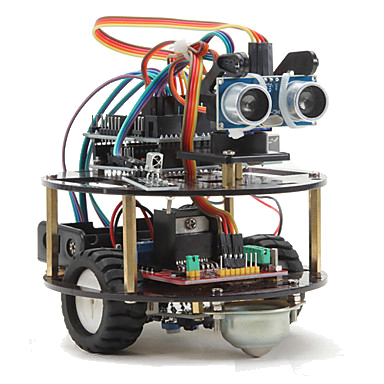 The Zumo robot for Arduino is an Arduino-controllable tracked robot platform. It includes two micro metal gearmotors coupled to a pair of silicone tracks, a stainless steel bulldozer-style blade, an array of six infrared reflectance sensors for line following or edge detection, a buzzer for simple sounds and music, a 3-axis accelerometer, magnetometer, and gyro for detecting impacts and tracking orientation.