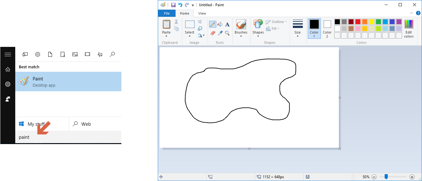 1) Draw the required route / obstacles in the graphics package of your choice. Remember that the scale is 1 pixel to 1 mm so drawing a 5 pixel wide line will equate to 5mm in the real world. Width of the line being followed can affect the algorithm (e,g if all the sensors are never over the line) so it's important to give this some thought.